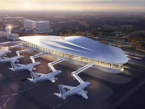 Ny iray amin'ireo endri-javatra manan-danja amin'ny terminal antsika dia ny fanamorana ny fananganana. Noho ny firafitry ny vy vita amin'ny injeniera mialoha, mihena ny fotoana fanamboarana, mamela anao hanana ny seranam-piaramanidina ianao ary mihazakazaka tsy misy fotoana. Ankoatr'izay, ny terminal dia natao mba hahomby amin'ny angovo, mahomby, manamaivana ny vidin'ny fiasa mandritra ny fanomezana tontolo milamina ho an'ny mpandeha.