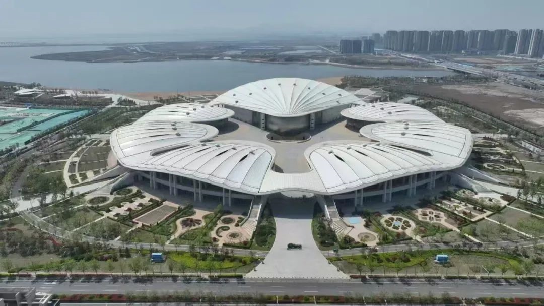Ao amin'ny sehatry ny fihetsiketsehana Qingdao SCO, ny afovoan-tsarimihetsika Pearl Expo Mago Mago dia mamela ny fahatsapana maharitra ao amin'ny farihy Ruyi. Noheverina avy any ambony, ny "firaisan-kina" boribory -Ins Design Enesign Ensign Enition Entrementnected fito, tonon-trano fotsy tahaka ny akorandriaka. Izy ireo dia mamorona onjam-peo, tsy misy onjam-peo izay miakatra tsara tarehy mankany an-danitra.