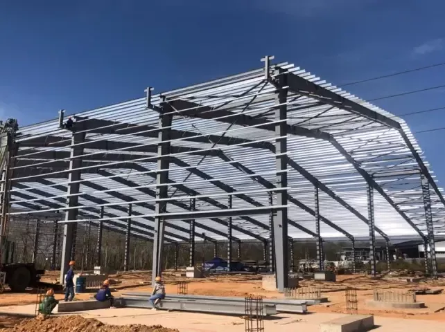 Ny singa vita amin'ny vy vita amin'ny vy dia alefa any amin'ny toeram-panorenana ary miangona amin'ny fampiasana cranes sy fitaovana mavesatra hafa. Ny fizotran'ny fametrahana matetika dia manomboka amin'ny fananganana sy ny vatolampy tsanganana amin'ny fototra. Avy eo dia napetraka ny voromahery mba hampifandraisana ireo tsanganana, mamorona ny rindran-tsambo amin'ny trano fanatobiana entana. Natsangana ny trusses tafo ary natokana ho an'ny rindrina, manohana ny rafitry ny tafo. Ity fizotran'ny fivoriambe ity dia miantoka ny tsy fivadihana ara-drafitra sy ny fahamarinan'ny tranobe.