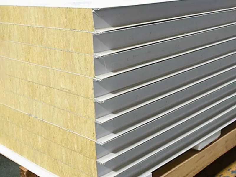 Ny fototry ny tontonana sandwich dia ahitana ny Rockwool, akora fibre mineraly insulation fantatra amin'ny toetra tsara insulation mafana sy acoustic. Manodidina io fotony io dia misy takelaka metaly roa sosona, matetika vy na alimo, izay manome henjana ara-drafitra sy miaro ny insulation amin'ny singa ivelany.